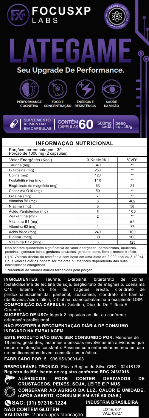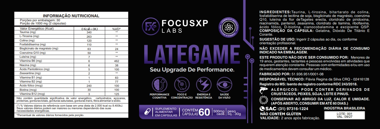 Lategame é um suplemento alimentar. Indústria regularizada pela ANVISA. Resultados podem variar conforme rotina e uso.